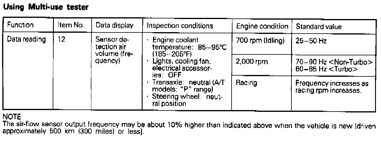 3. If the AFS output frequency is high, the engine resistance may increase or the compressed pressure may leak.