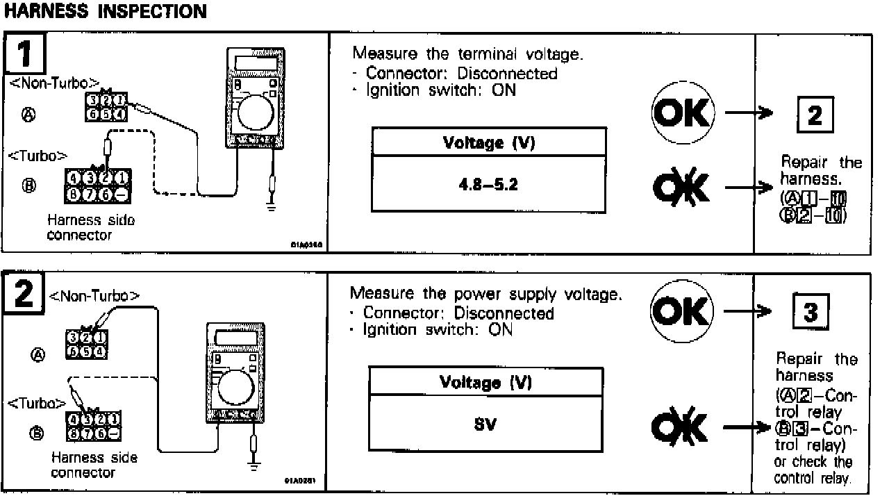 4. If a wire is broken in the filter reset circuit of a turbo vehicle. shock may be felt during deceleration from the high speed (high load) operation.