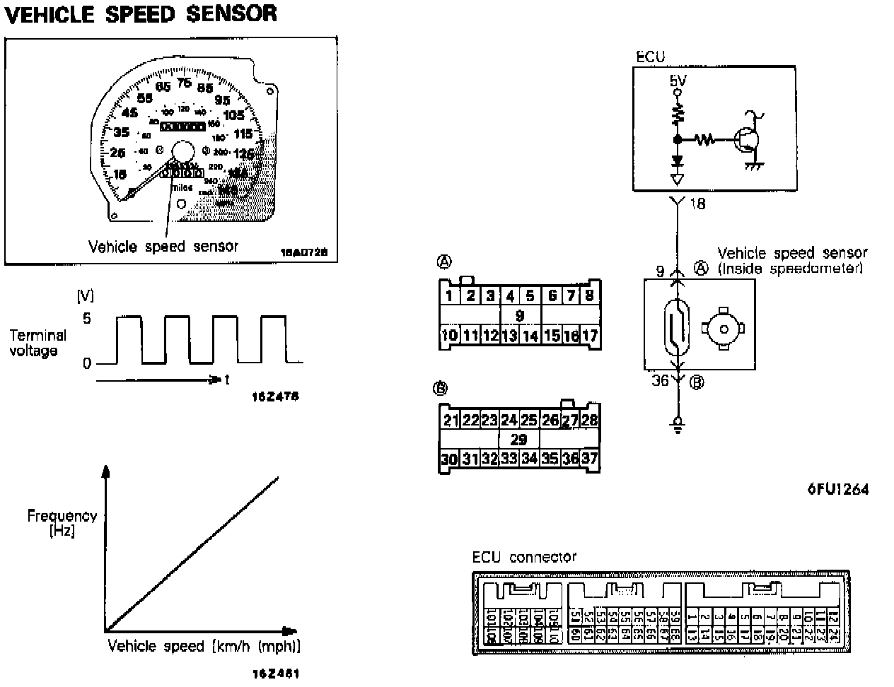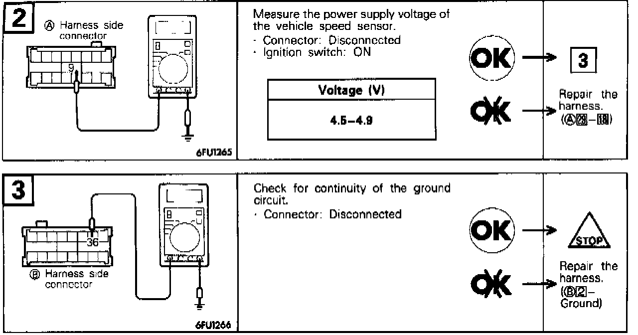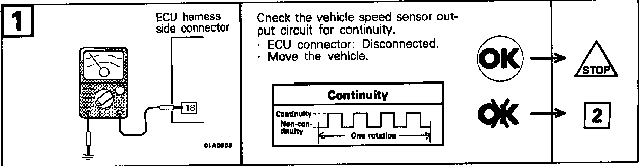 In case of a short-circuit or broken wire in the vehicle speed sensor circuit, the speed range is fixed at the 3rd speed in automatic vehicles