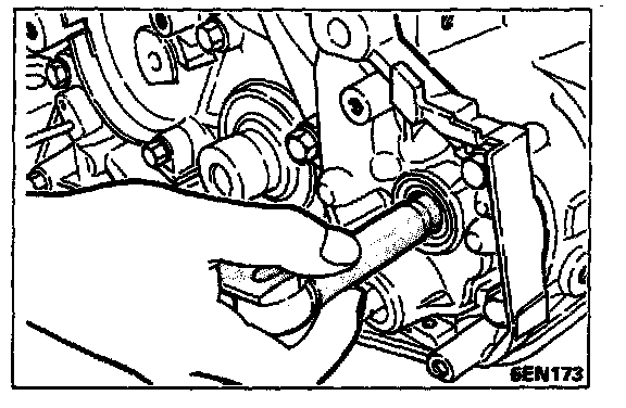 Using the special tool, remove the left silent shaft rear bearing from the cylinder block.