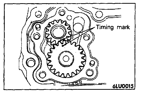 Coat the gear with plenty of engine oil, and align the two timing marks.
