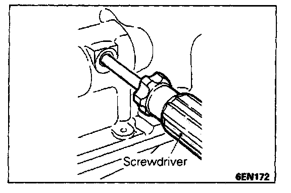 1. Insert a Phillips screwdriver into a hole in the left side of the cylinder block to lock the silent shaft.