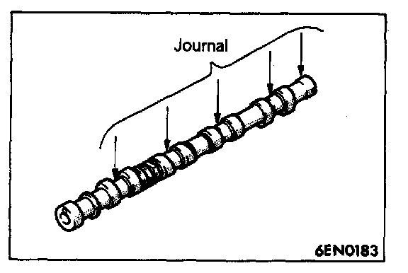 1. Visually check the camshaft journal surfaces and replace if damage or seizure is evident.