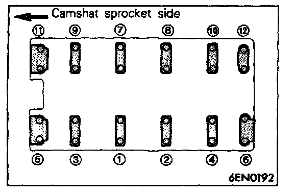 2. Tighten the bearing caps in the order shown two to three times by torquing progressively.