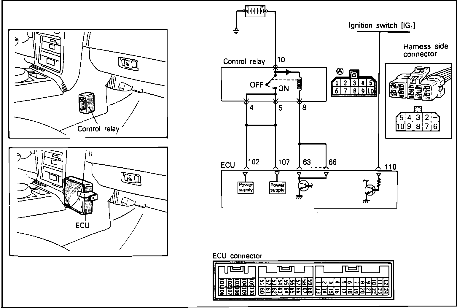 NOTE: Failure of the control relay may interrupt power supply to the fuel pump, injectors and/or the ECU, resulting in start failure.