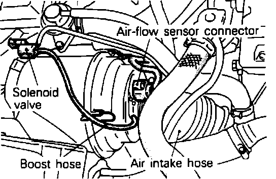 The wastegate solenoid valve is located attached to the air cleaner housing.