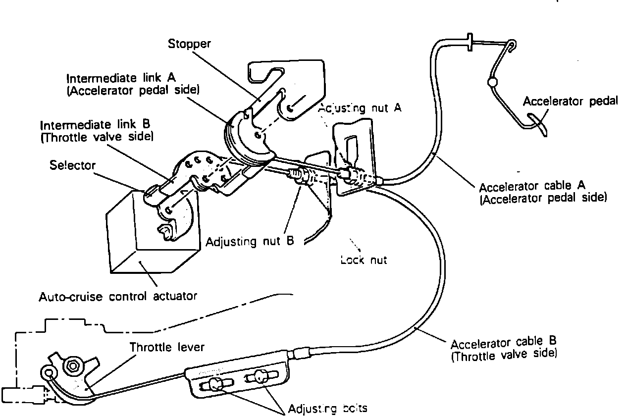 REMOVAL OF ACCELERATOR CABLEAccelerator Cable Adjustment Bolts: