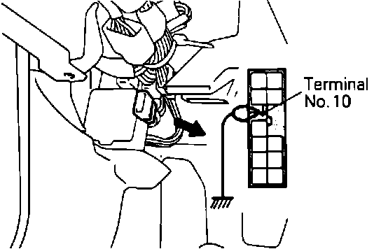 3. Using a suitable jumper wire, ground the #10 terminal in the self-diagnosis connector.