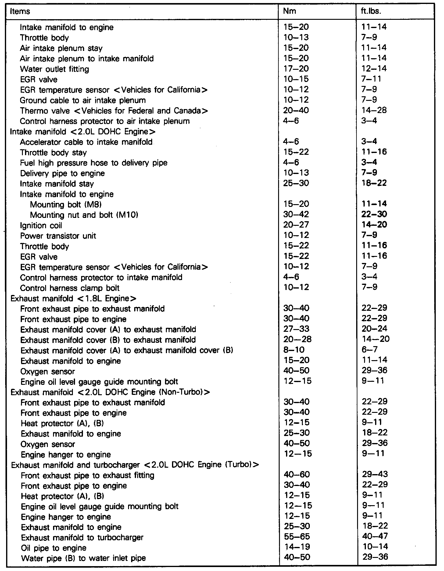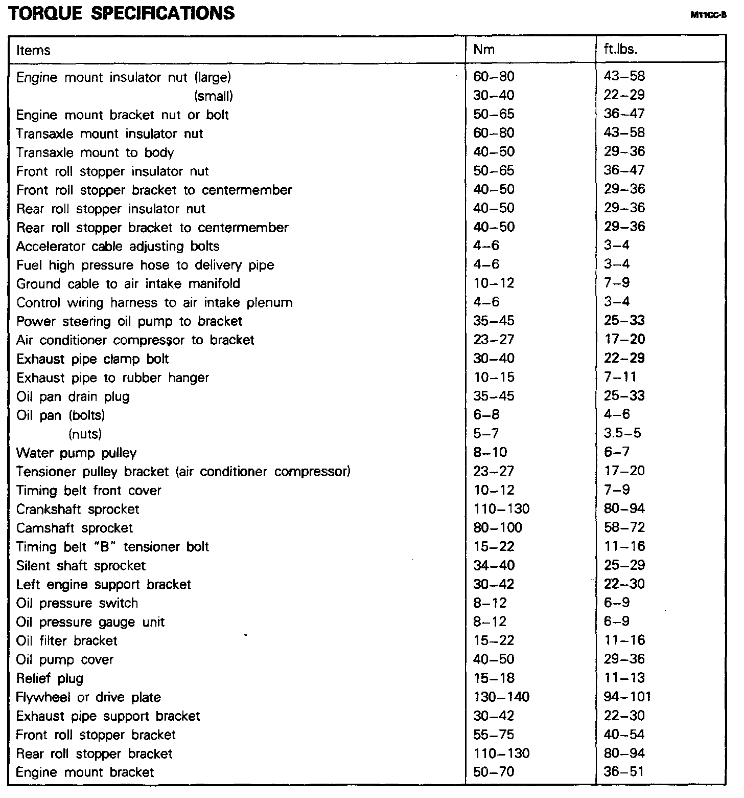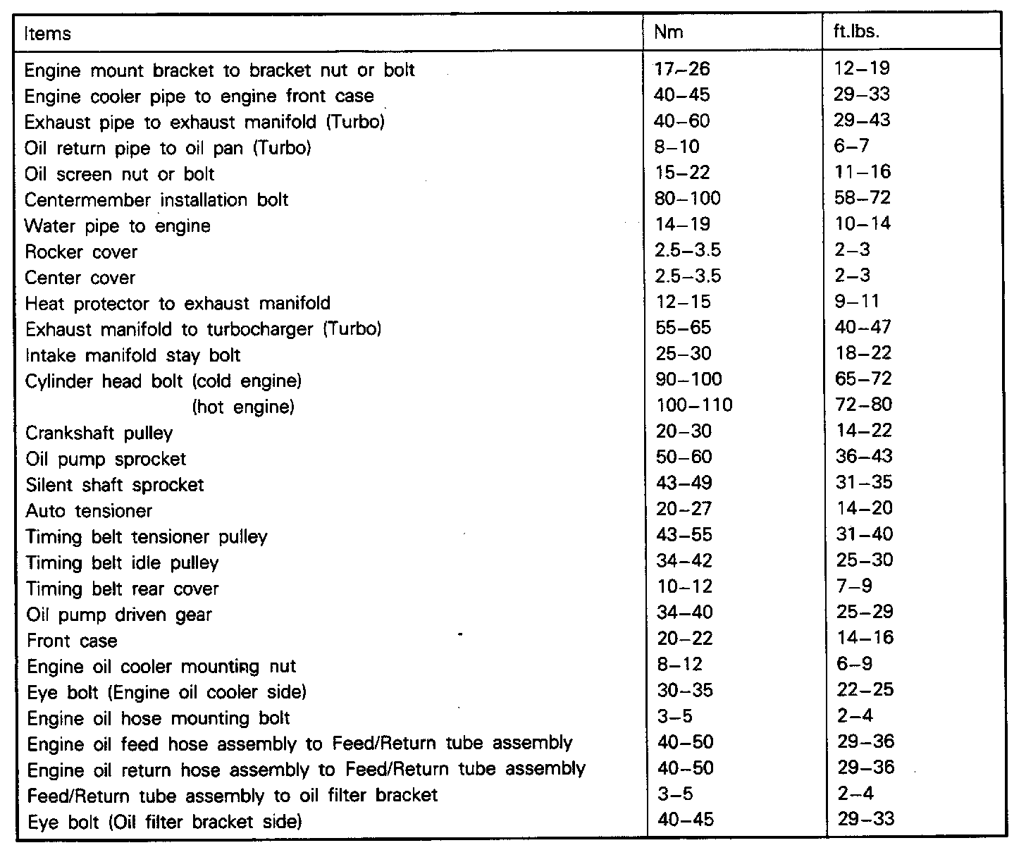 Torque Specifications