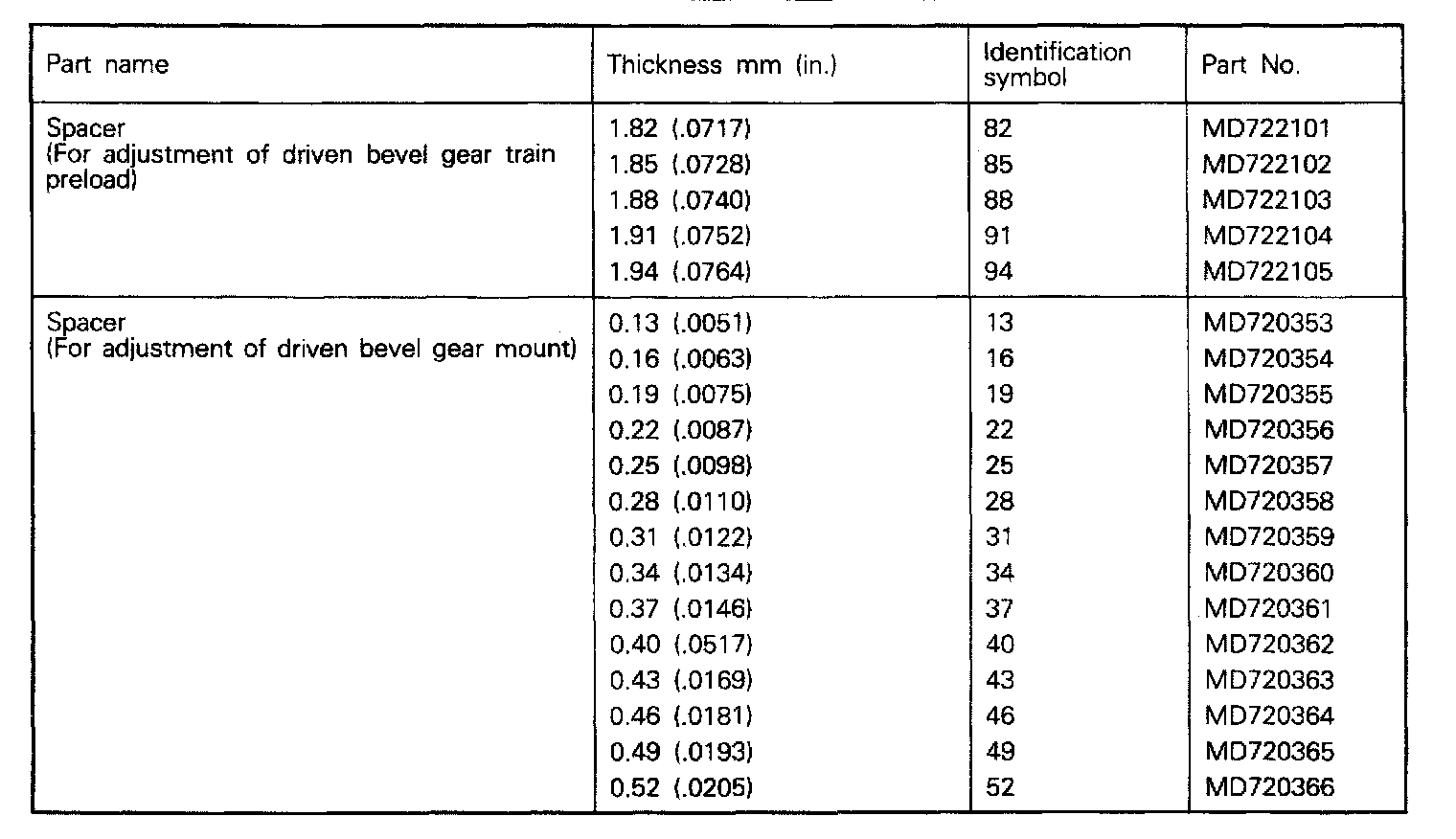 W5M33 5-spd M/T, Drive Bevel Gear Mount / Train Preload: