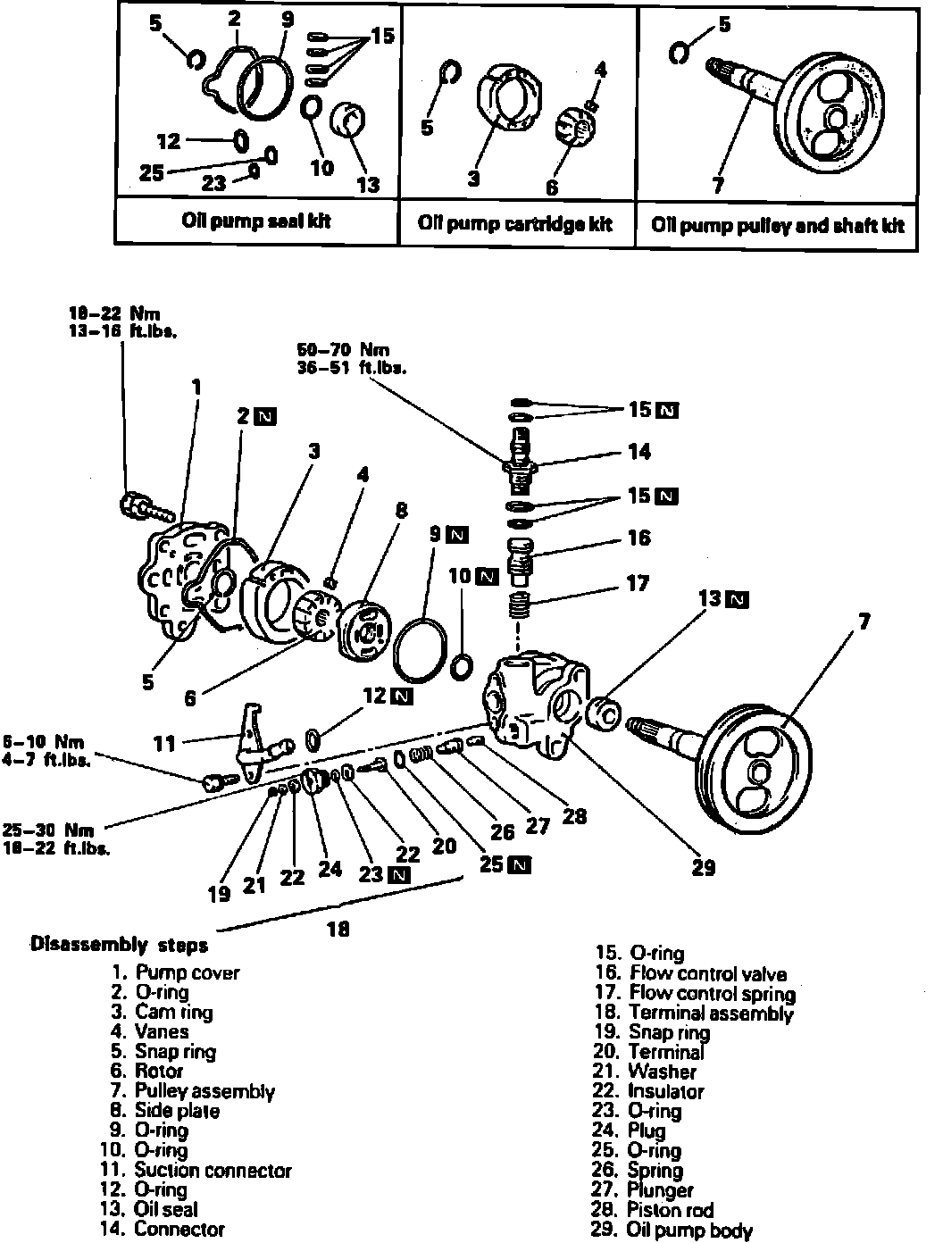 Disassemble power steering pump in numbered sequence shown in Fig. 6.