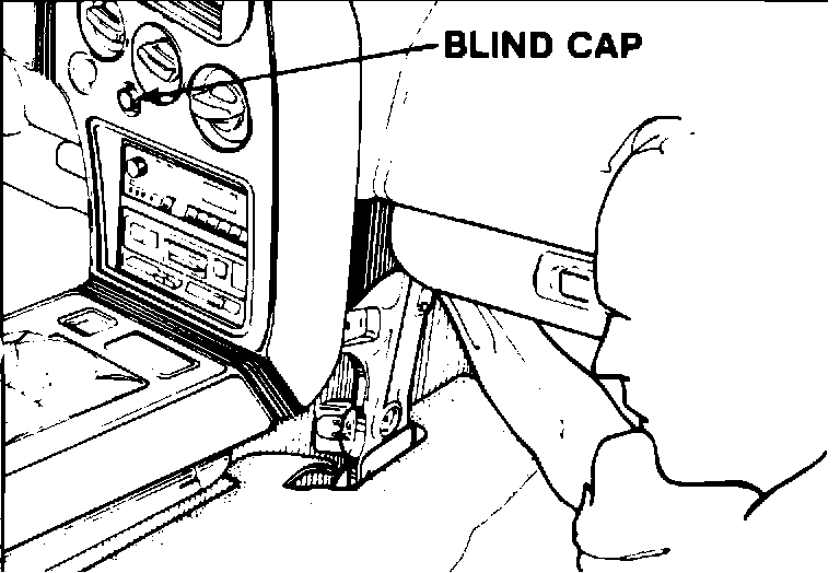 b. Reach behind the support bracket and locate the A/C harness. Push out the blind cap and disconnect the harness from the blind cap.