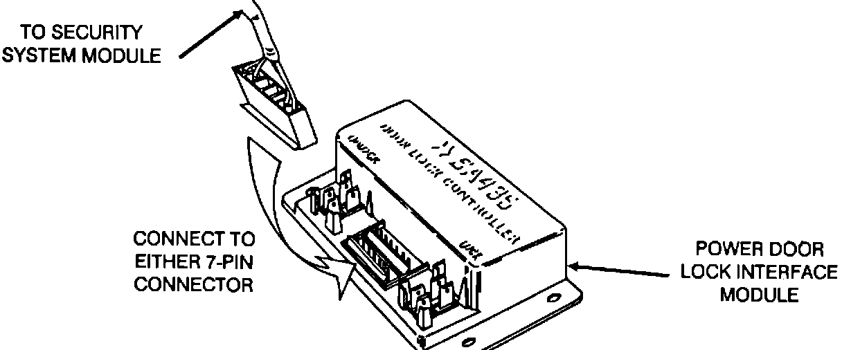 Included in the Power Door Lock Interface Module (A999NC1X01) kit is a 7 Pin jumper harness assembly. This jumper harness is not used with the new Triple Diamond Vehicle Security System (A990NA1X01) only with the old systems (A998NA1X01 and A998NA1X02). When installing the new security system AND a door lock interface module, discard the jumper harness (Figure 1). Connect the 7-pin connector from the security system module to eithet connector of the power door lock interface module.