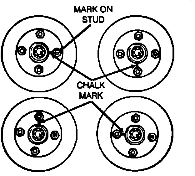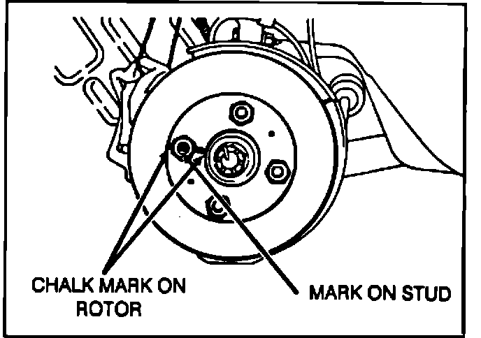 If run-out exceeds specifications after truing the rotor, then try indexing, or changing the phase of the rotor on its studs. (A chalk mark on the rotor and on a stud will remind you where you started. See Figure 3).