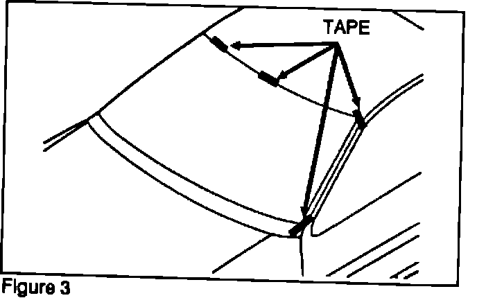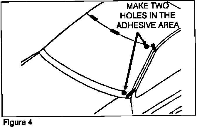 5. Using a sharp-pointed drill, make two holes in the adhesive area of the windshield. One at the upper edge and one at the lower edge (Figure 4).