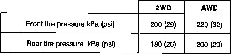 NOTE: Again adjust the tire pressures to specifications, front and rear.