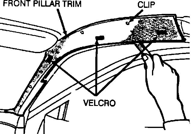 1. Using a plastic trim tool, detach the front pillar trim - the clip mounting areas and Velcro areas on the backside. Remove the front pillar trim.