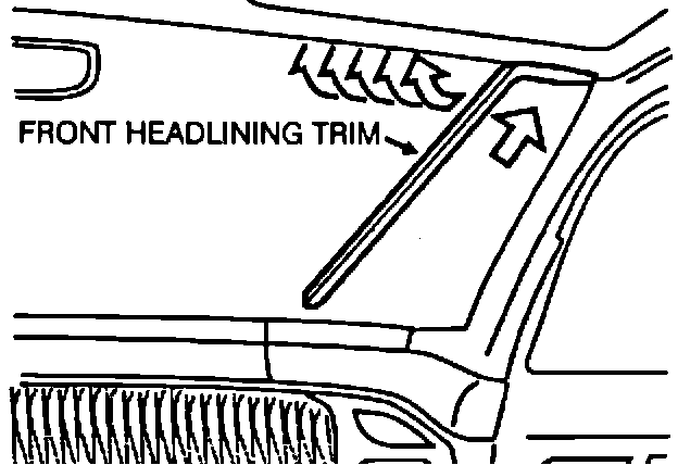 The new headlining trim attaches differently than the original trim. Use the following installation procedure to install the new trim.