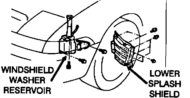 5. Remove the left front lower splash shield. Remove the windshield washer reservoir (Figure 3).