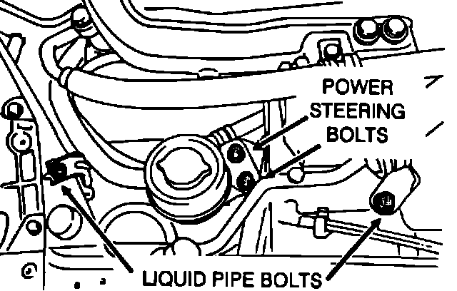 If the vehicle is equipped with air conditioning, remove the two bolts securing the air conditioner liquid pipe clamps to the body (Figure 4).