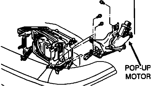 13. Resecure the wiring harness with the removed tie wraps. Reinstall the pop-up motor and reconnect the link to the headlight door assembly. Reverse the order of removal to reinstall the removed parts.