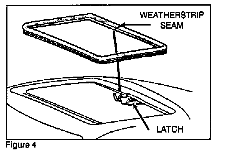 5. Position the new weatherstrip on the housing with the seam of the weatherstrip lined up with the rear of the sunroof housing at the center of the latch base (Figure 4).