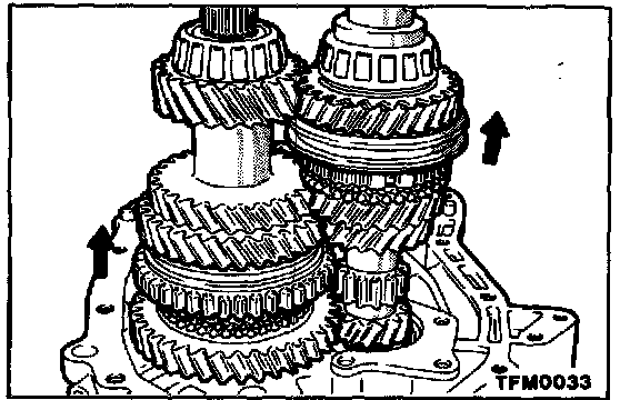 Lift up the input shaft assembly and remove the intermediate gear assembly.