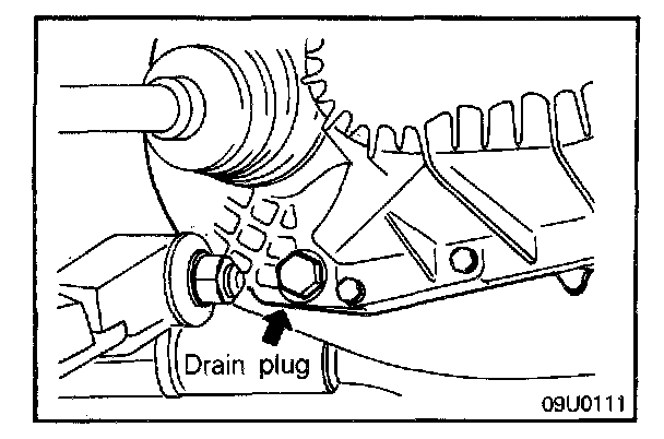 1. Position vehicle on a flat level.2. Remove filler and drain plugs and allow the transaxle oil to drain.