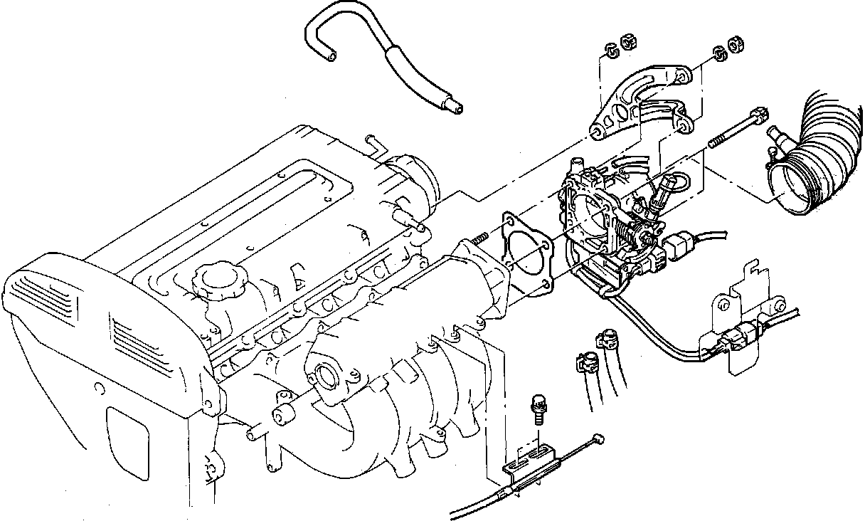 5. Remove the four bolts securing the throttle body to the intake air plenum and remove the throttle body.