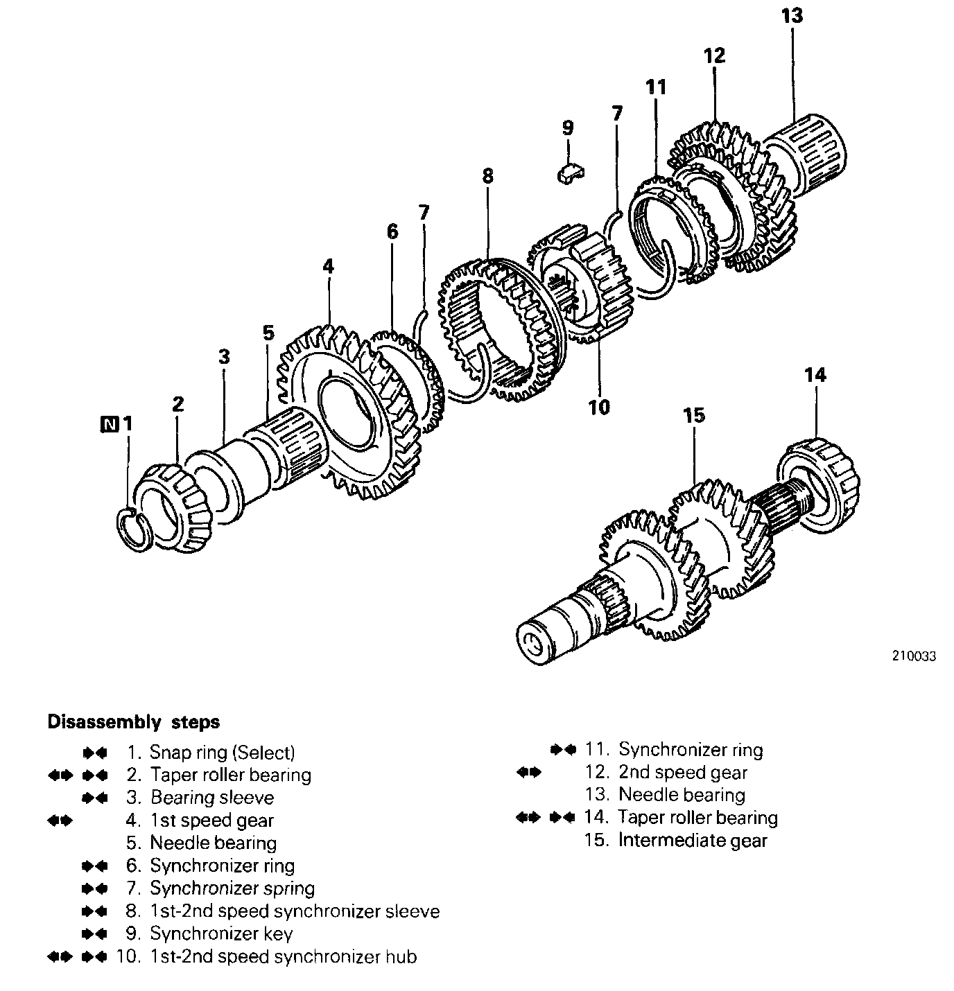 2. REMOVAL OF TAPER ROLLER BEARING/4. 1ST SPEED GEAR