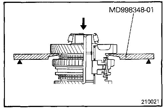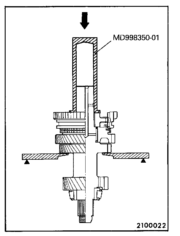 Install the 1st speed gear and bearing sleeve together using the special tool as illustrated.