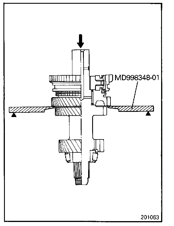 Install the taper roller bearing over the intermediate gear using the special tool as illustrated.