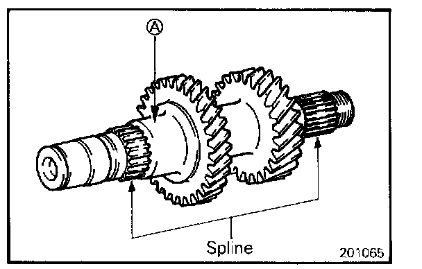 - Check the outer surface of the intermediate gear where the needle bearing is mounted for damage, abnormal wear and seizure [portion (A)]