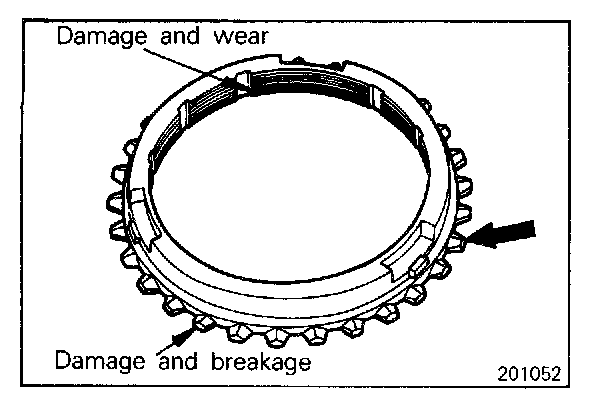 - Check the synchronizer cone for rough surface, damage and wear.