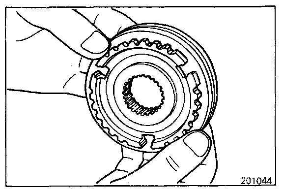 - Combine the synchronizer sleeve and hub and check that they slide smoothly.