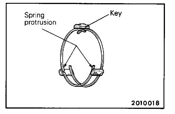 NOTE: Take care to prevent the projections of the front and rear spring from sitting in the groove of the same key.