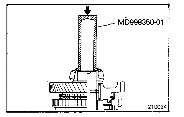 Install the taper roller bearing using the special tool as illustrated.