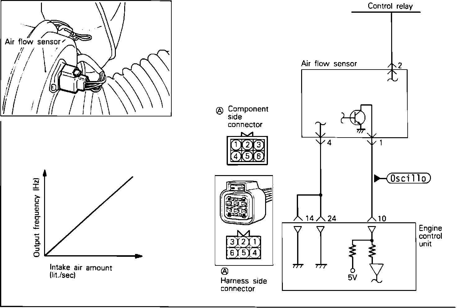 The Air Flow Sensor (AFS) is a Karman Vortex type and measures the intake air volume.