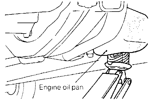 (1) Jack up the vehicle after placing a wooden block between the jack and the engine's oil pan.