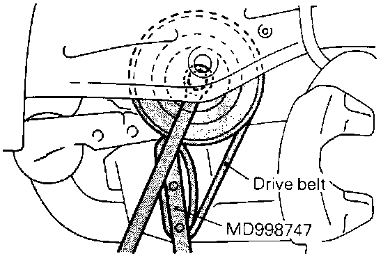 (1) Using the special tool and a disused drive belt, stop the rotation of the crankshaft pulley.