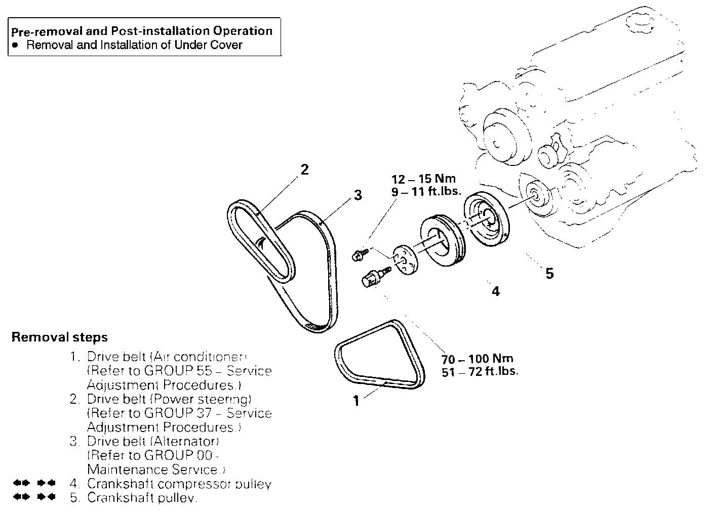 4. REMOVAL OF CRANKSHAFT COMPRESSOR PULLEY / 5. CRANKSHAFT PULLEY