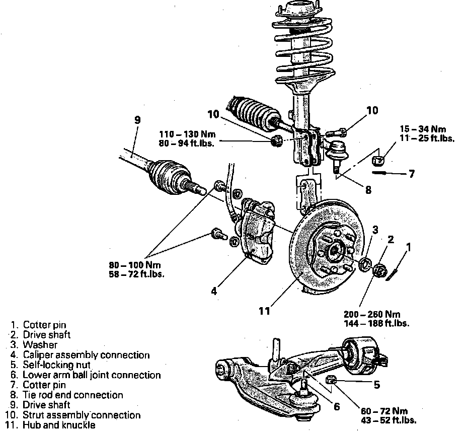 7. Remove hub and knuckle as an assembly from strut assembly.