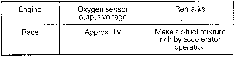 (2) While repeating engine racing, measure the oxygen sensor output voltage.