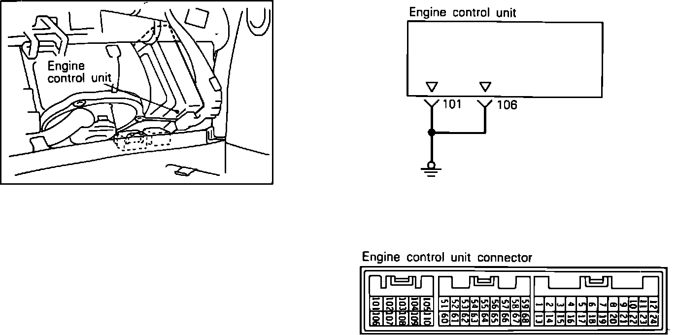 2. Using an ohm meter, check for continuity between ECU harness terminal 101 and ground.