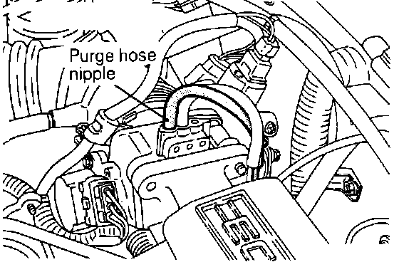 1. Disconnect the vacuum hose from the throttle body purge hose fitting and connect a hand vacuum pump to the fitting.