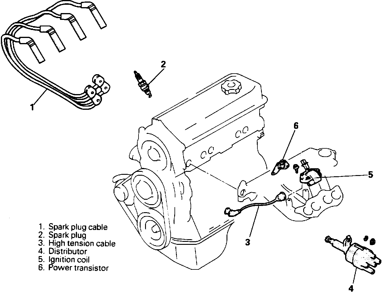 5. Remove distributor mounting nut, then the distributor assembly from engine.