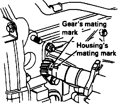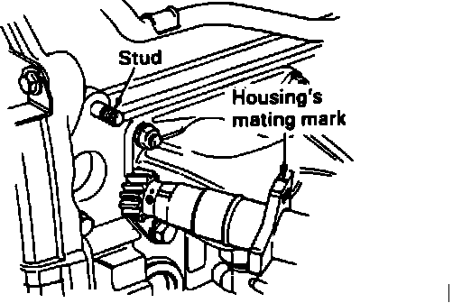 3. Install the distributor to the engine while aligning the fine cut (groove) on the distributor's installation flange with the center of the distributor installation stud.