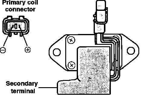 1. With ignition switch in the off position, disconnect the primary wires from the ignition coil.