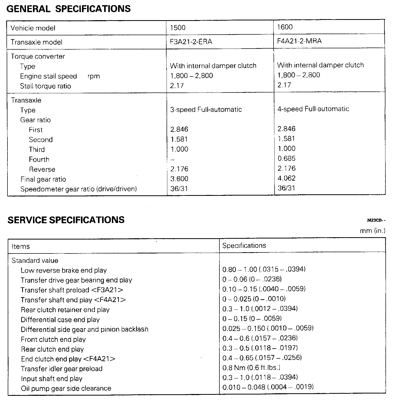 F3A21 3-spd/F4A21 4-spd A/T, Gear Ratio & Standard Values: