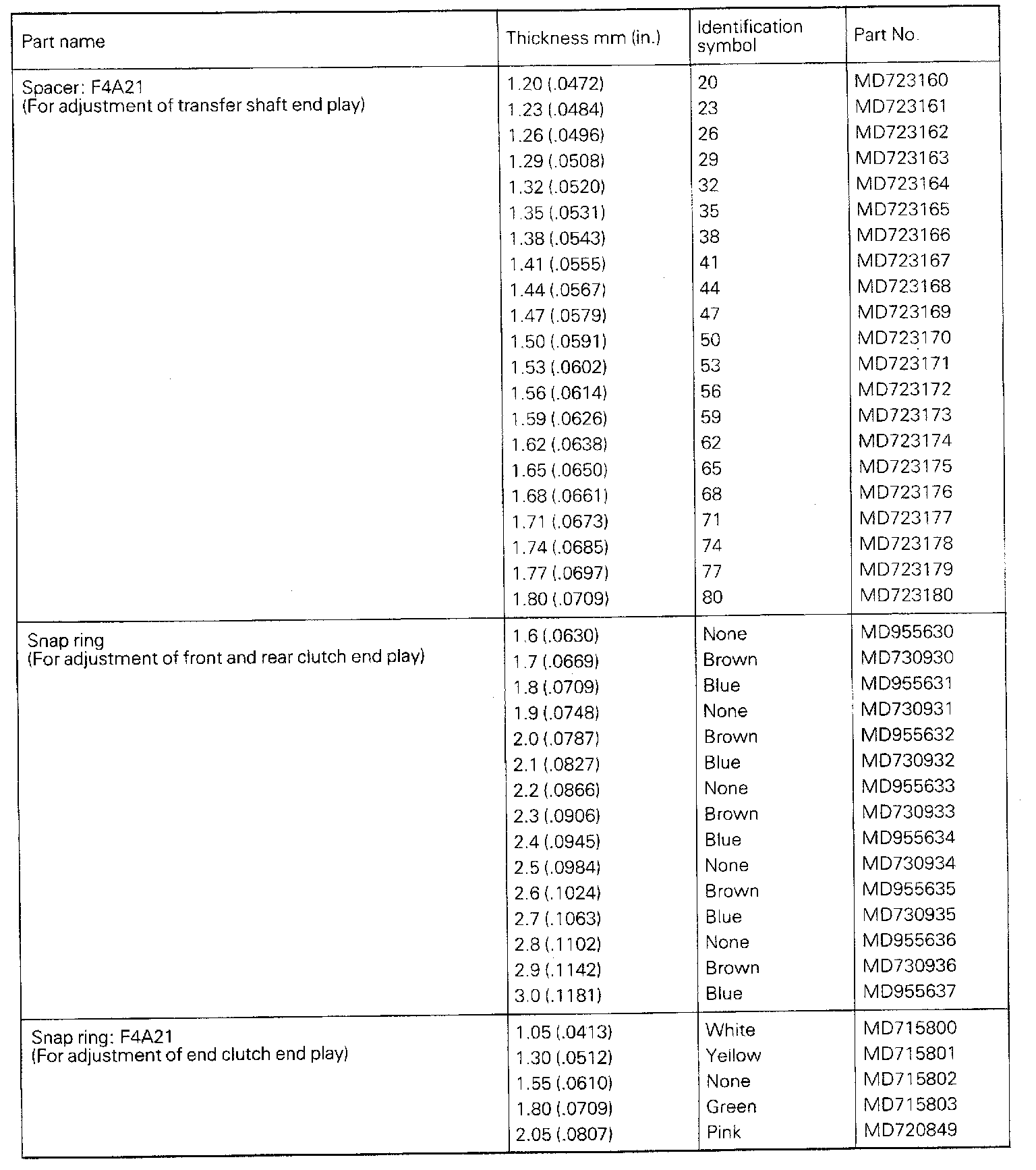 F3A21/F4A21 5-spd A/T, Transfer Shaft & Clutch End Play: